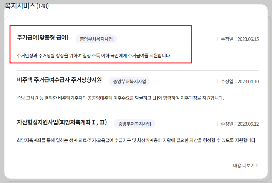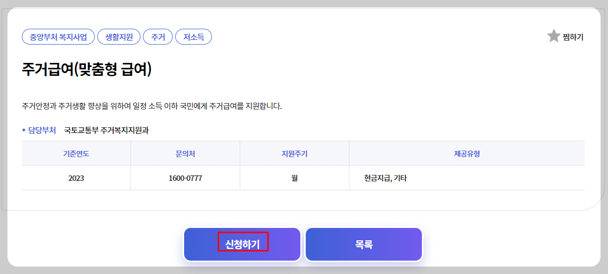 3. 그림과 같이 신청할 주거급여를 선택하고 클릭하세요.