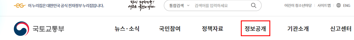 1. 인터넷 검색창에 '국토교통부'를 검색하세요. (아래 바로가기 링크 이용하셔도 됩니다.)