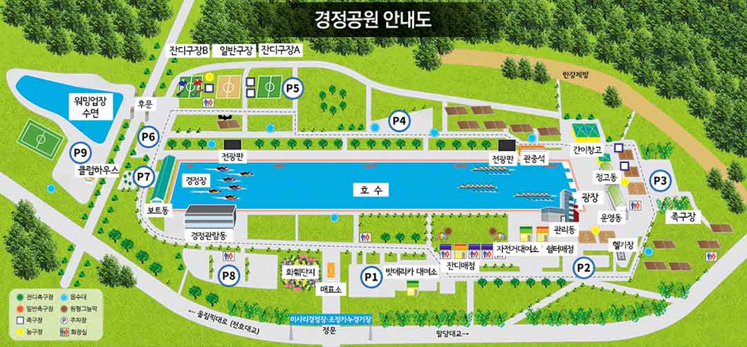 - 주차구획 : 2,280대(경정장 1,078대, 조정호 902대, 워밍업장 300대) / 720대 공간(이면) 주차